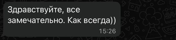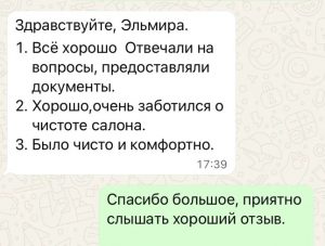 - Всё было отлично! Очень отзывчивая, клиентоориентированная девушка. Подробно отвечает на все вопросы, быстрая обратная связь
